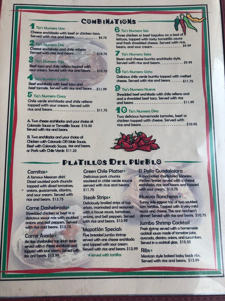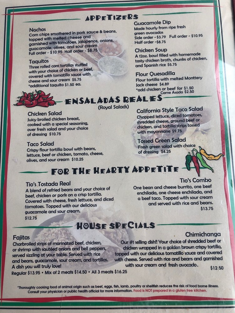 Enjoy dining with outdoor seating options, takeout, and delivery, or simply relish a cozy family dinner. Visit Tio's for a culinary journey that delights the senses!